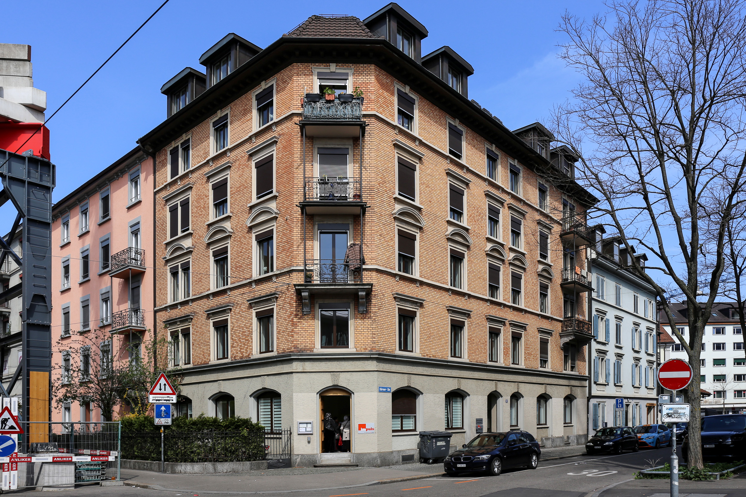 Der Erwerb dieses Hauses war 1919 der Anlass zur Gründung der Genossenschaft zum Korn. Hier befand sich das erste VHTL-Sekretariat. Nach dem Kauf liess die Genossenschaft zum Korn das Haus mit ursprünglich vier kleinen Läden mehrfach umbauen. Der erste Stock wurde als Sitz des VHTL-Zentralsekretariats und Geschäftsstelle der Genossenschaft eingerichtet, das Parterre der Maler- und Gipsergenossenschaft vermietet. Als das Zentralsekretariat 1941 ins Haus zum Korn wechselte, blieb die Sektion Zürich an der Körnerstrasse. 1948 wurde ein Schalterraum für den Zahlungsverkehr eingerichtet, 1980 ein Sitzungszimmer in eine kleine Wohnung umgebaut. Heute befindet sich die Beratungsstelle Impuls des Schweizerischen Arbeiterhilfswerks (SAH) im Erdgeschoss, den kleinen Saal nutzt die Ballettschule Kerscher-Jenny. Das Haus ist vor Kurzem ins Inventar der kunst- und kulturhistorischen Schutzobjekte der Stadt Zürich aufgenommen worden.