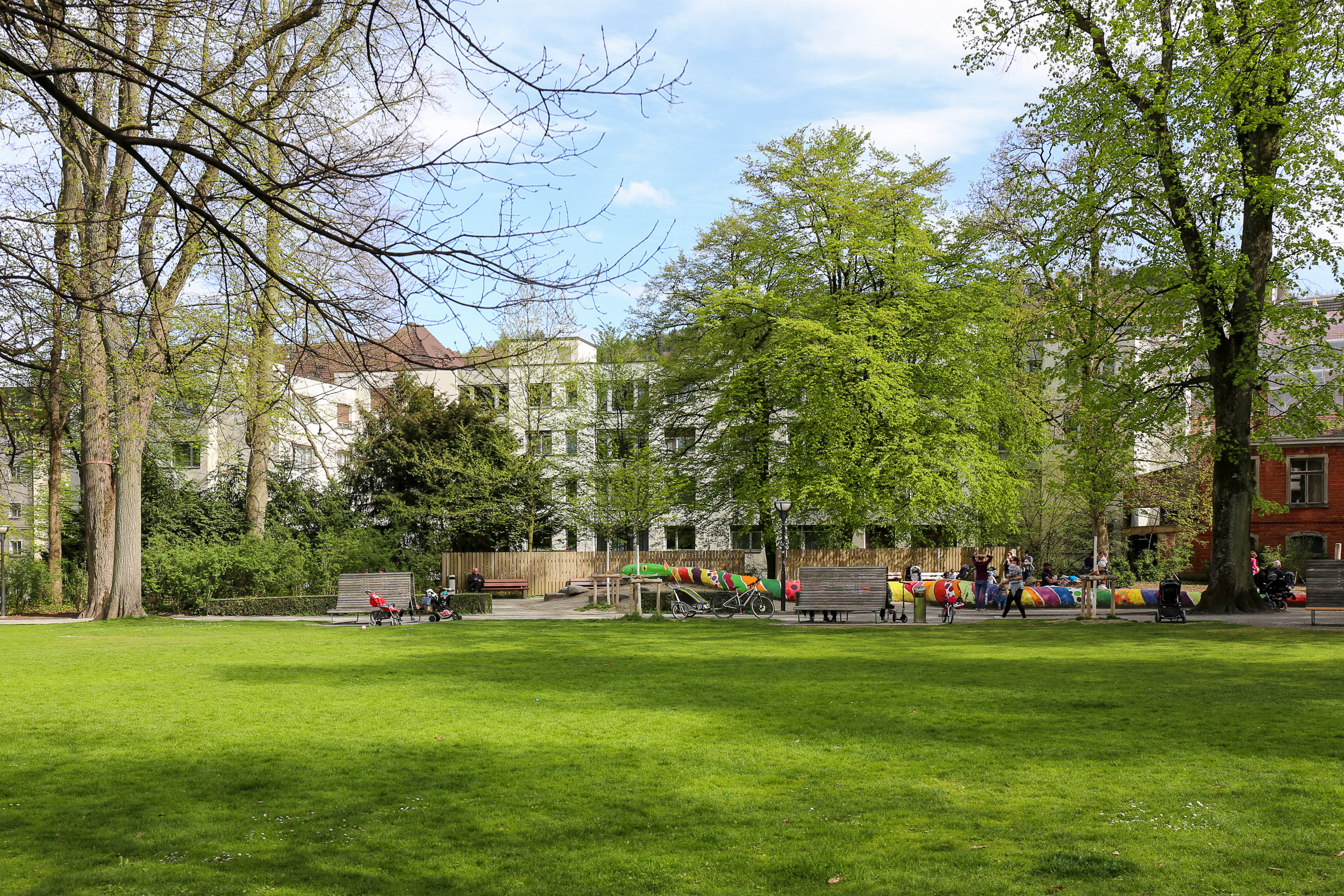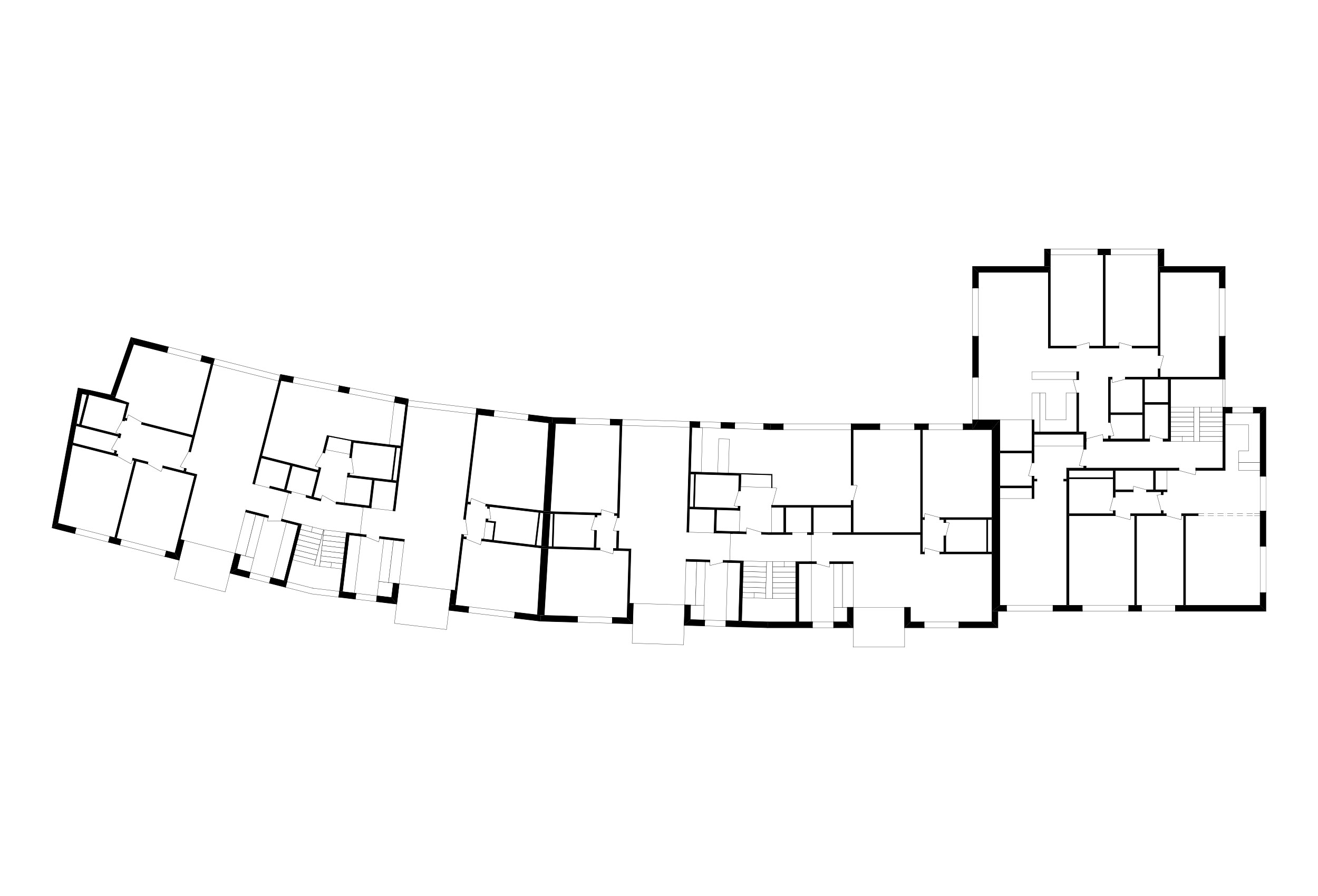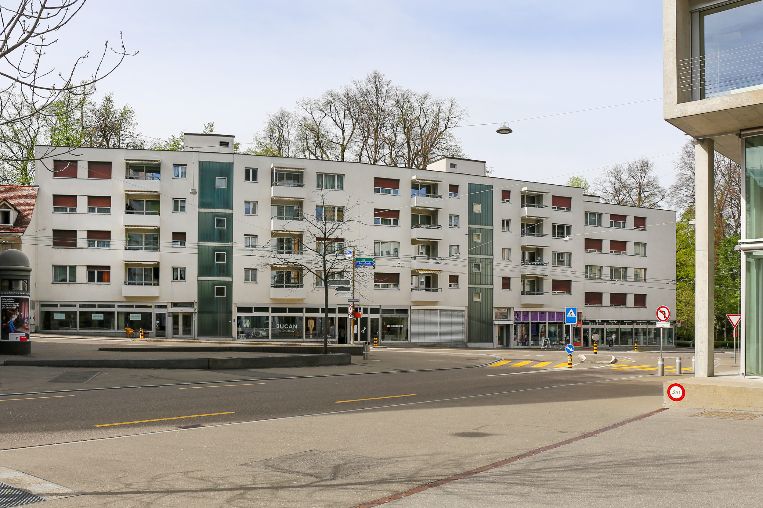 Die gekrümmte Zeile steht zwischen der lauten Rorschacher Strasse und dem ruhigen Stadtpark. Sie bietet einen Mix von Läden und Wohnungen mit 1 bis 4,5 Zimmern. Im 1942 gekauften Haus Nummer 45 wuchs der Flugpionier, Luftbildfotograf und Swissair-Gründer Walter Mittelholzer auf, dessen Eltern hier eine Bäckerei betrieben. 1965/1966 ersetzte die Genossenschaft zum Korn die fünf Altbauten durch die von Architekt Fritz Harms entworfene Wohn- und Geschäftsüberbauung. Die Idee eines Volkshauses konnte nicht realisiert werden, da der Volkshausgenossenschaft St. Gallen die nötigen Mittel fehlten. Bis 1999 befand sich in Nummer 45 das VHTL-Regionalsekretariat.